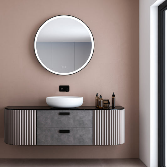 LYSKA Luna LED Badkamerspiegel Rond 80 cm – Dimbaar in Mat Zwart