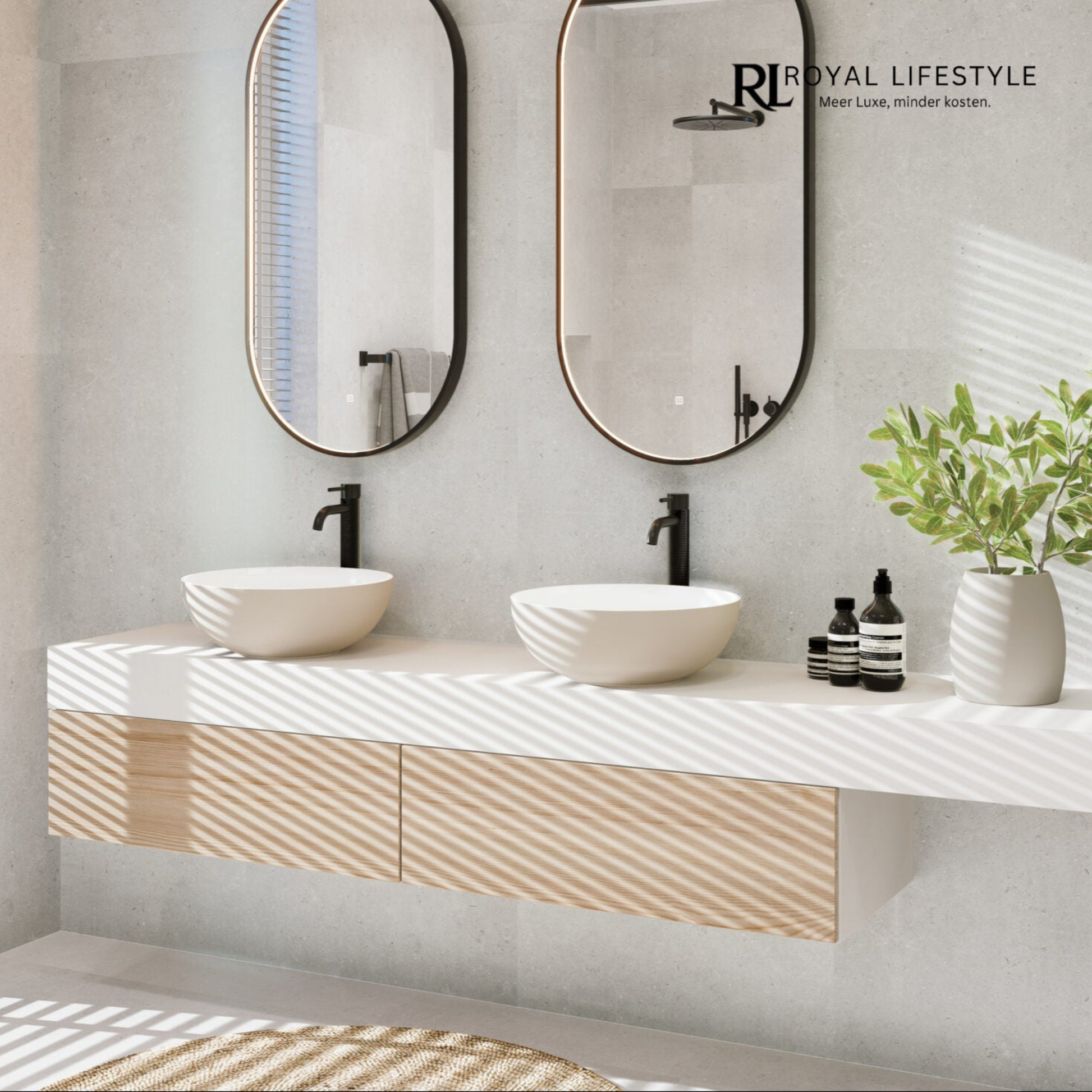 De spiegel is voorzien van dimbare LED-verlichting met drie instelbare kleurstanden: warm wit (3000K), neutraal (4200K) en helder daglicht (6000K). Zo kies je eenvoudig de juiste sfeer voor elk moment van de dag.
