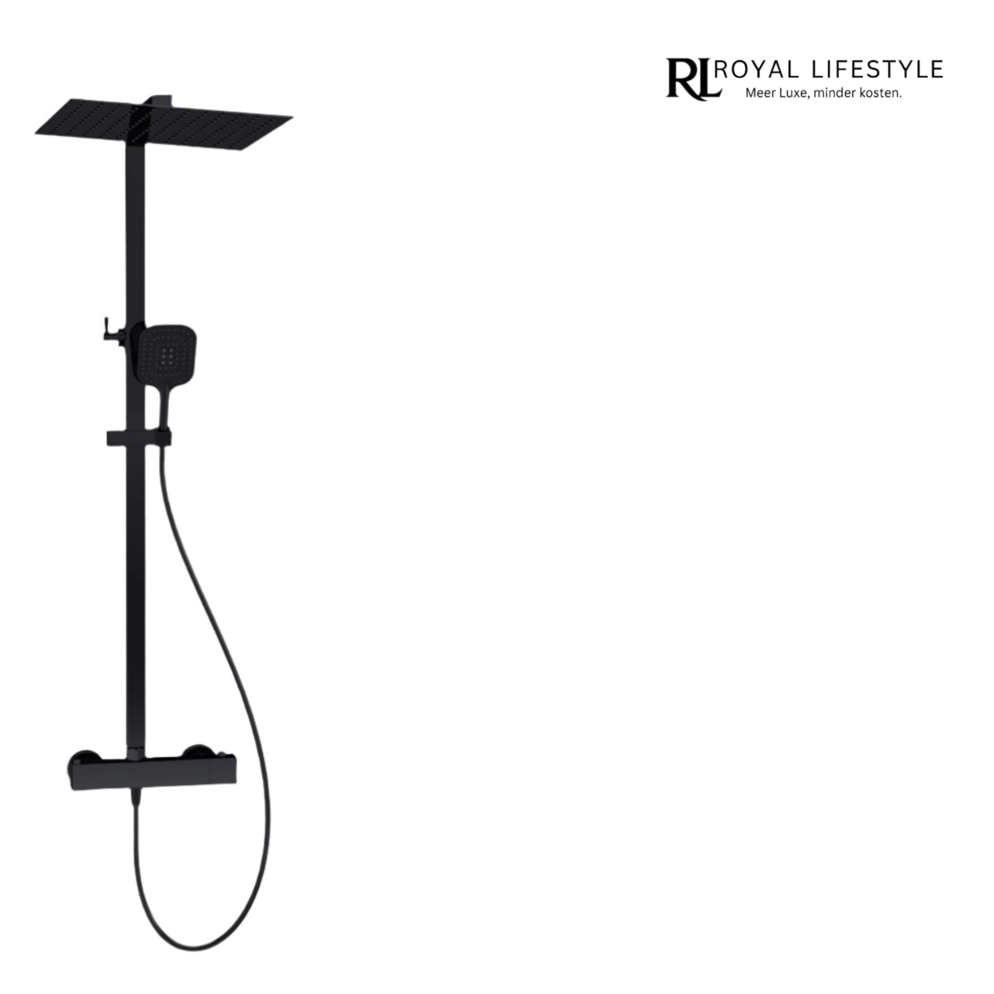 LYSKA Atria Doucheset – Opbouw Compleet – Mat Zwart – Met 30×30 cm Regendouche, Handdouche & Thermostaatkraan